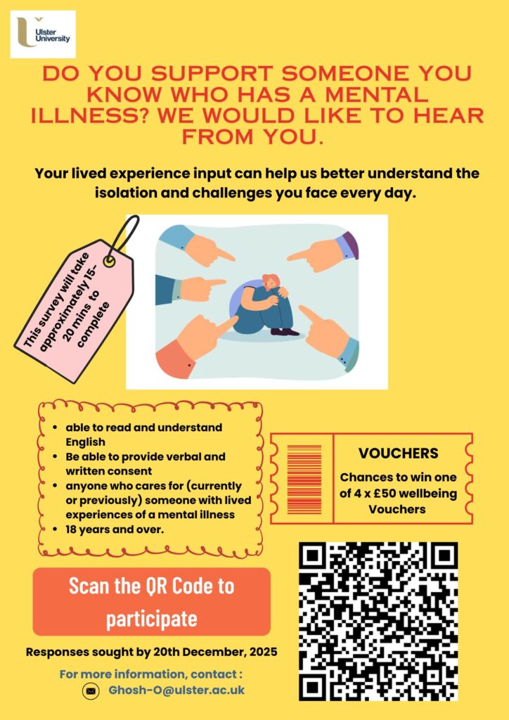 - Complete the questionairre via this link: https://app.onlinesurveys.jisc.ac.uk/s/ulster/family-context-stigma-a-mixed-methods-study-of-the-experience-2